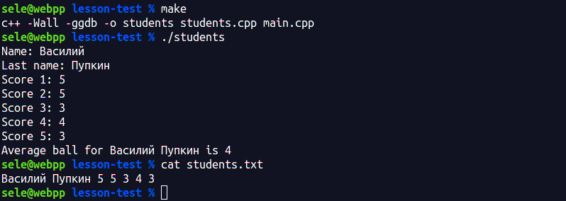 Содержимое main.cpp останется прежним. Скомпилируйте и запустите программу. Перед тем, как приложение завершит свою работу, в директории с исполняемым файлом будет создан новый текстовый файл с оценками — students.txt.